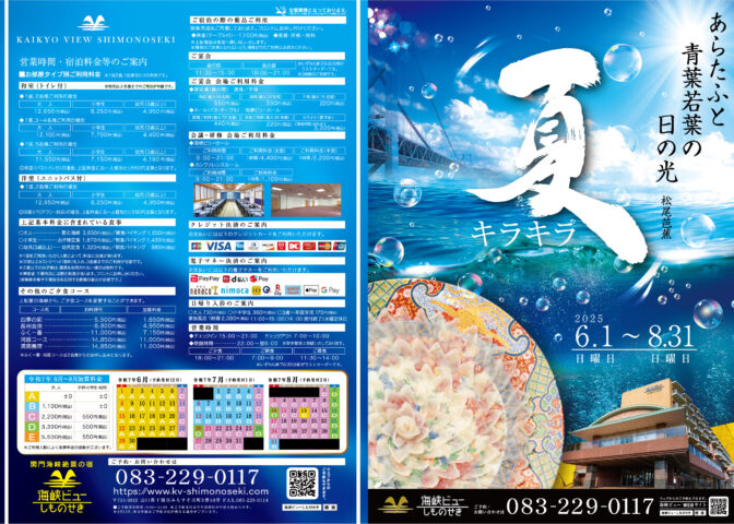 NEWS海峡ビューしものせきからの新着情報 海峡ビューしものせきからの新着情報をご覧いただけます。 お知らせやおすすめのイベントなど、最新の情報をお届けいたします。 すべて お知らせイベントデジタルパンフレット Allすべて 2025.11.24お知らせ 12月ランチ貸切営業日と限定メニューのご案内 2025.11.22お知らせ 【12月】ロビーコンサートのお知らせ 2025.10.31お知らせ 【11月】ロビーコンサートのお知らせ 2025.10.21お知らせ ボディケア臨時休業のお知らせ 2025.10.21お知らせ 11月ランチ貸切営業日のご案内 2025.10.14デジタルパンフレット 冬(12月~2月)のパンフレット公開 2025.10.08お知らせ 休館のお知らせ 2025.09.23お知らせ 10月ランチ貸切営業日のご案内 2025.08.31イベント 体験ツアー付き宿泊のお知らせ 2025.08.18イベント 9月ランチ貸切営業日のご案内 Page 1 of 5123…5Next