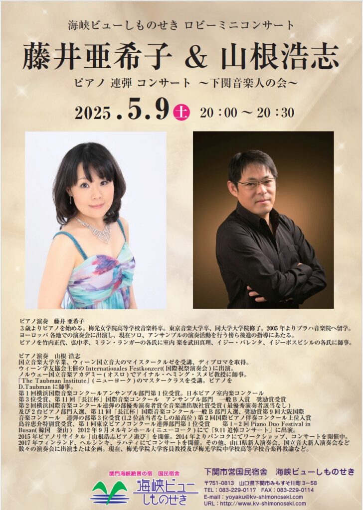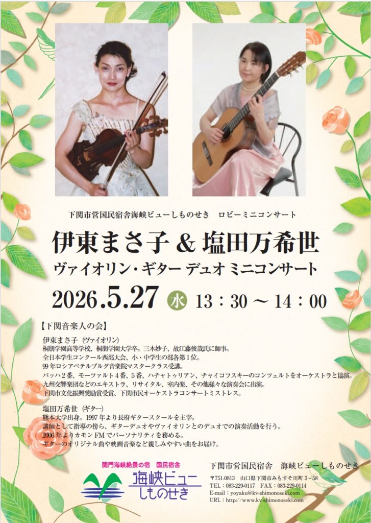 2026年5月も海峡ビューしものせきのロビーにてミニコンサートを開催いたします。