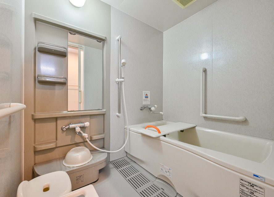 お体の不自由な方ものびのび過ごせるバリアフリールーム。室内に段差がなく、バス・トイレが分かれていますのでお過ごしいただきやすい空間です。
